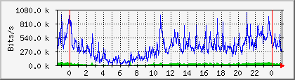 緑色の棒グラフはサーバーへ入る転送量を示します。